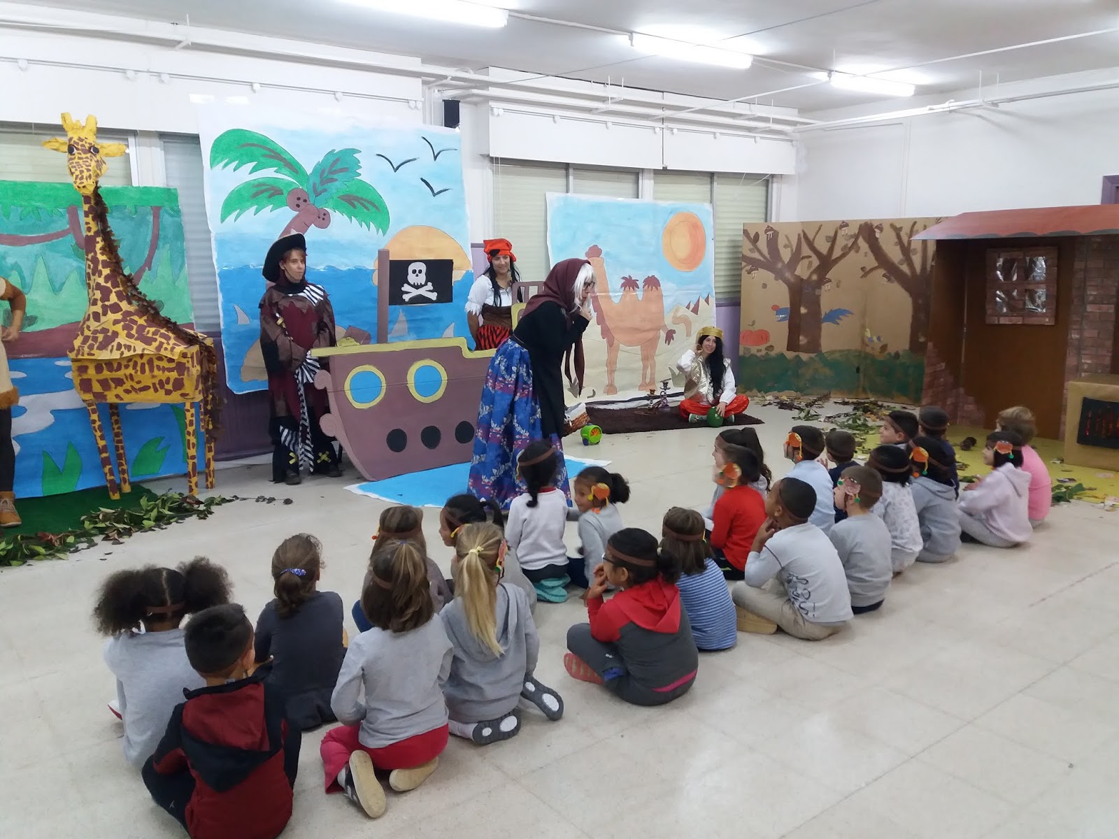 Primero fuimos al Salón de Actos donde escuchamos encantados un cuento. Bailamos y nos divertimos atravesando el Polo Norte, la Sabana, la Isla del Tesoro, el desierto y finalmente, llegamos hasta un bosque lleno de castañas. Le cantamos a la Castañera una canción que habíamos aprendido: "Cuando es el tiempo de las castañas" y nos hicimos fotos con ella y con los otros personajes del cuento.¡Nos lo pasamos genial!